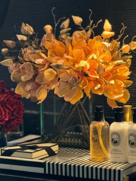 Avenue bowl with blue Phalaenopsis orchids