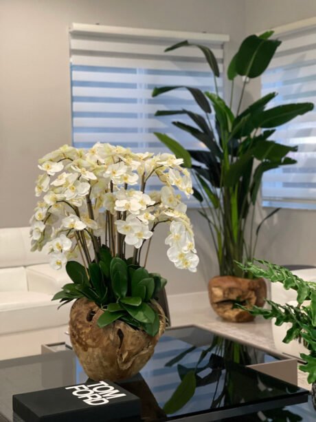 Extra Large Rustic Teak Bowl with Cascading White Orchids