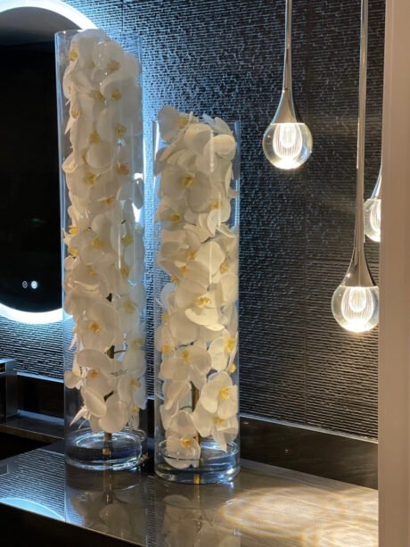 Glass Cylinder With White Phalaenopsis Orchids