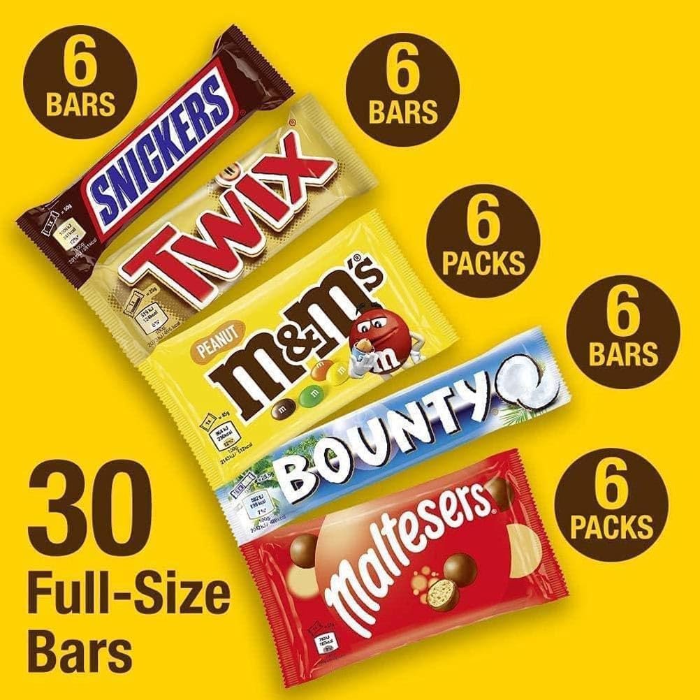 This variety chocolate box is crammed with all your Mars Wrigley favourites. It contains 30 full – size chocolate bars and it’s perfect for any occasion: