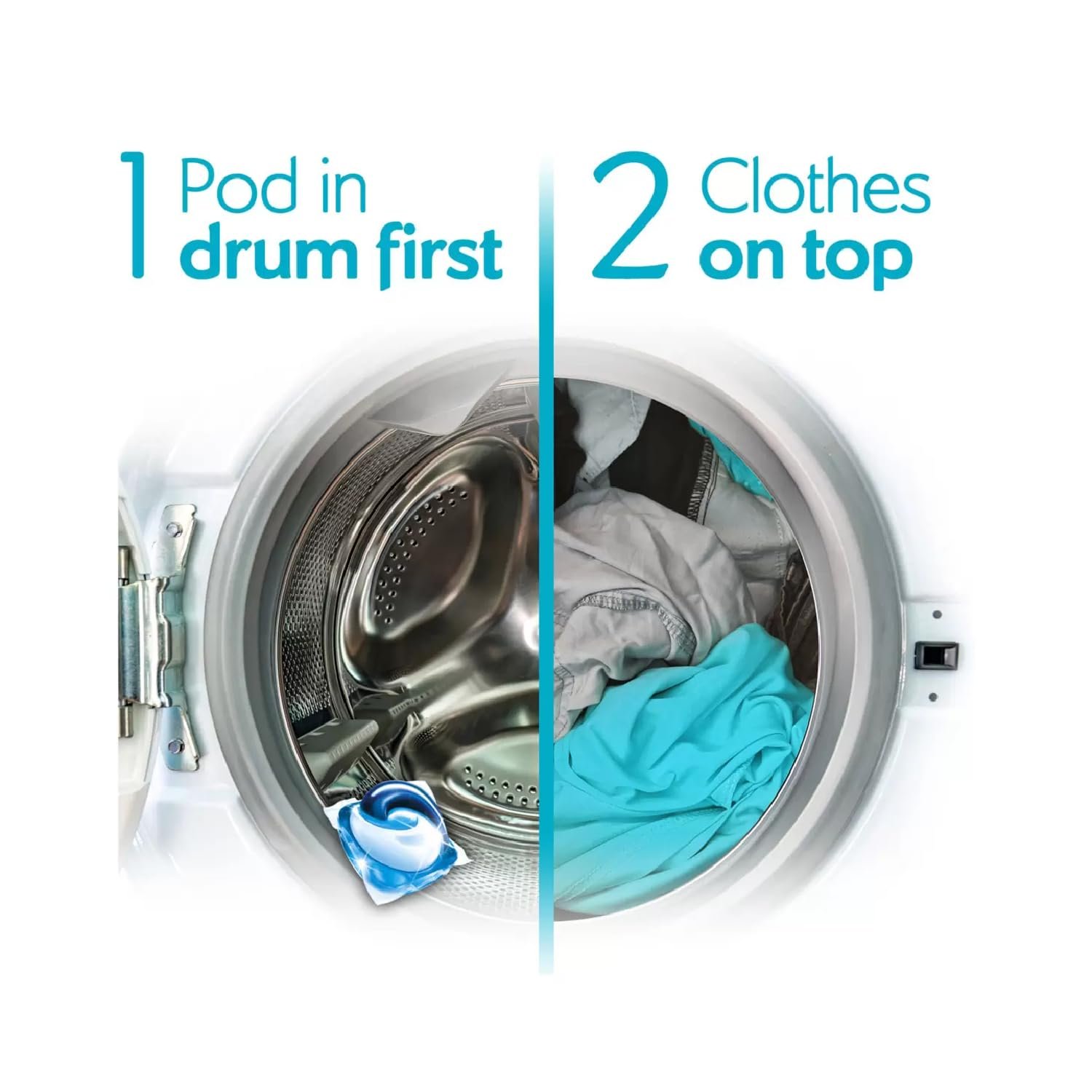 Unique multi-compartment design: The pods have aunique multi-compartment design which ensures thateach ingredient is released into the wash at the righttime. This means you get spotlessly clean clothes everytime.