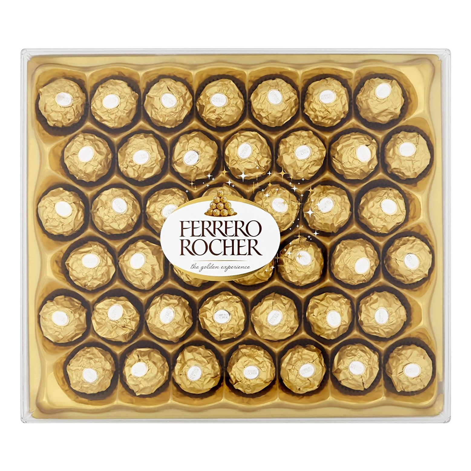 Discover the beautiful chocolate gift box of 42 pralines. with crunchy hazelnuts coated with velvety chocolate. Perfect mothers day chocolate. chocolate gifts for women and present for friends or family to show your gratitude. love and appreciation. Every Ferrero Rocher praline is created with passion and love. from the initial roasting of the hazelnut. right until they are encased in their iconic golden wrapper. creating the elegant and delicious box of chocolate that is loved by all. A perfect chocolates gift for a generous thank you and for all special occasions such as Easter. Ramadan. Christmas. chocolate gifts for men and birthday chocolate. There are moments worth celebrating. from a wedding of close friends to a birthday of your loved one. celebrate meaningful moments with the Ferrero Rocher gift box. The golden wrapper and the hidden treasure inside of a delicious praline will make the moment unforgettable.