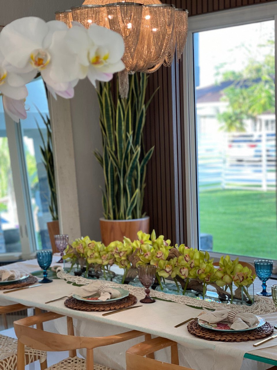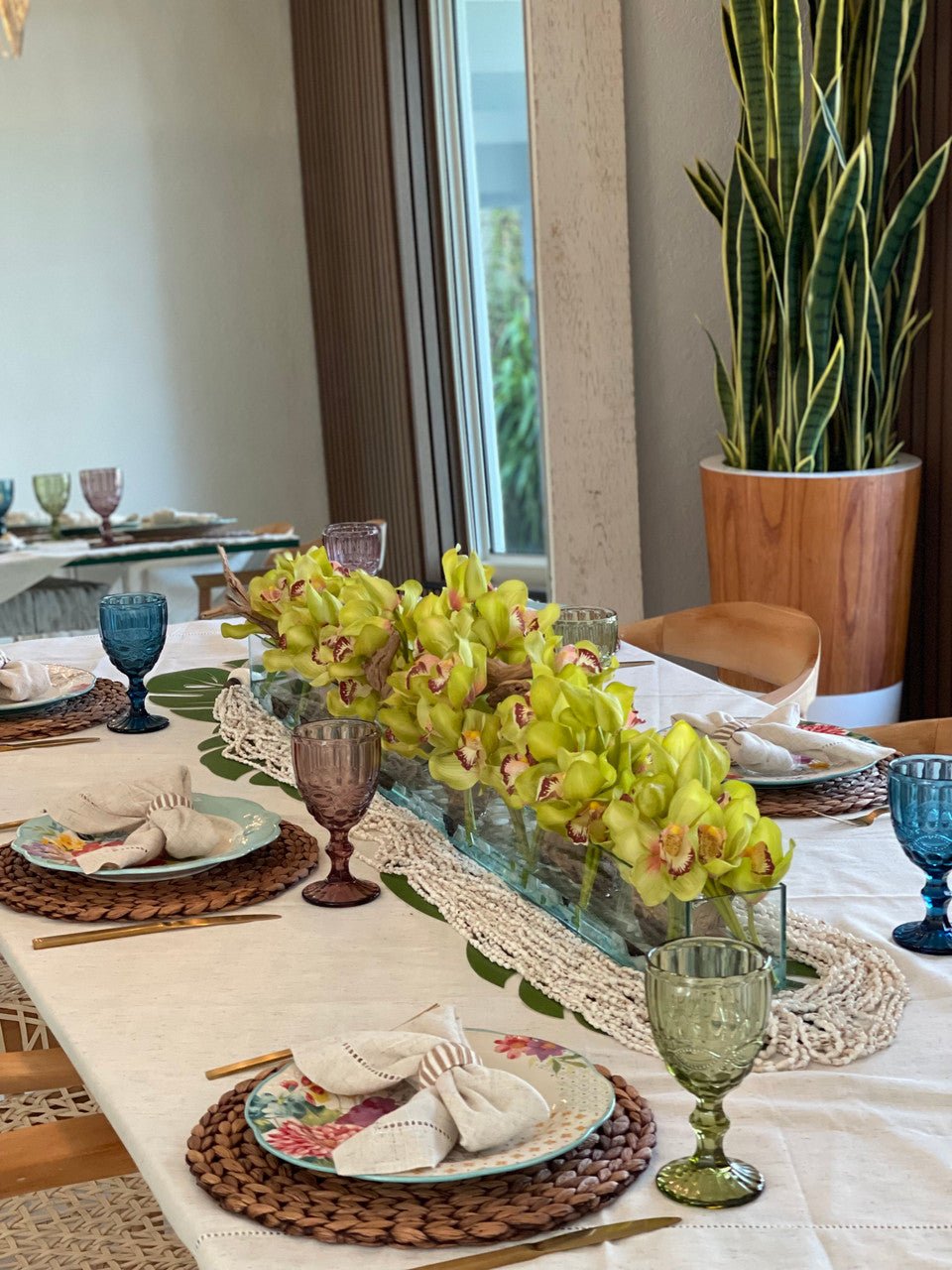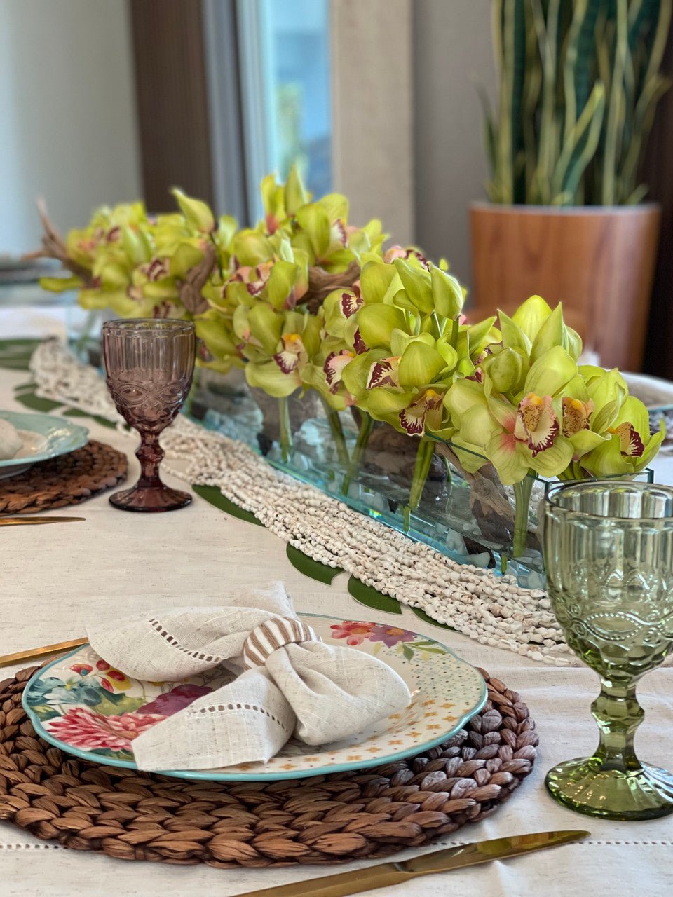 Be the first to review “48″ Casa Moderna glass plate planter with green Cymbidium orchids”