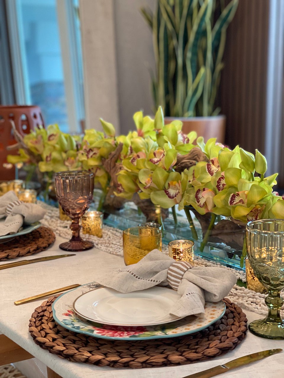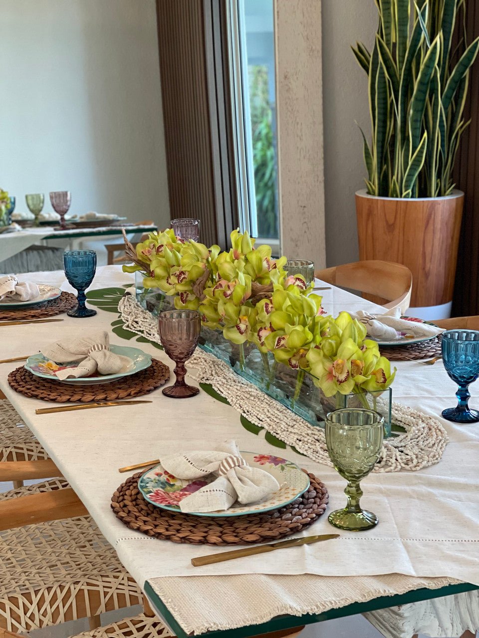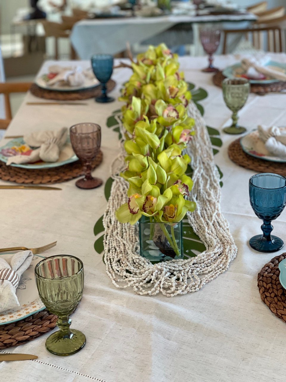 Be the first to review “48″ Casa Moderna glass plate planter with green Cymbidium orchids”